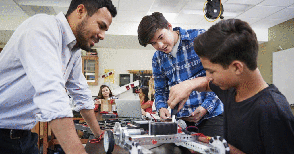 Khác với cách dạy truyền thống – chia nhỏ từng môn học – mô hình STEAM hướng đến tích hợp kiến thức, giúp học sinh áp dụng linh hoạt vào các tình huống thực tế. Giáo viên không còn là “người giảng bài” mà là người hướng dẫn, đồng hành và truyền cảm hứng sáng tạo.